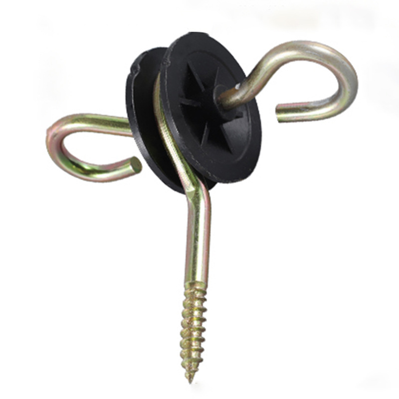 Electric fence plastic black screw-in hook gate handle insulator for wood post