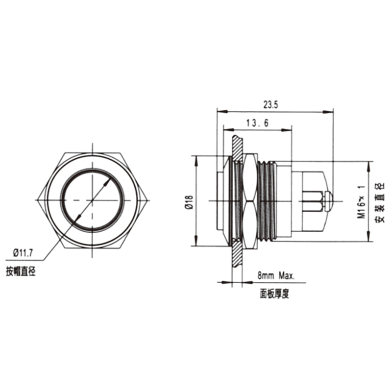 | Mounting Hole | 16mm |
